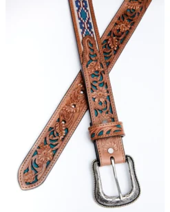 Cody James Men’s Brown Hair-On Basketweave Studded Leather Belt